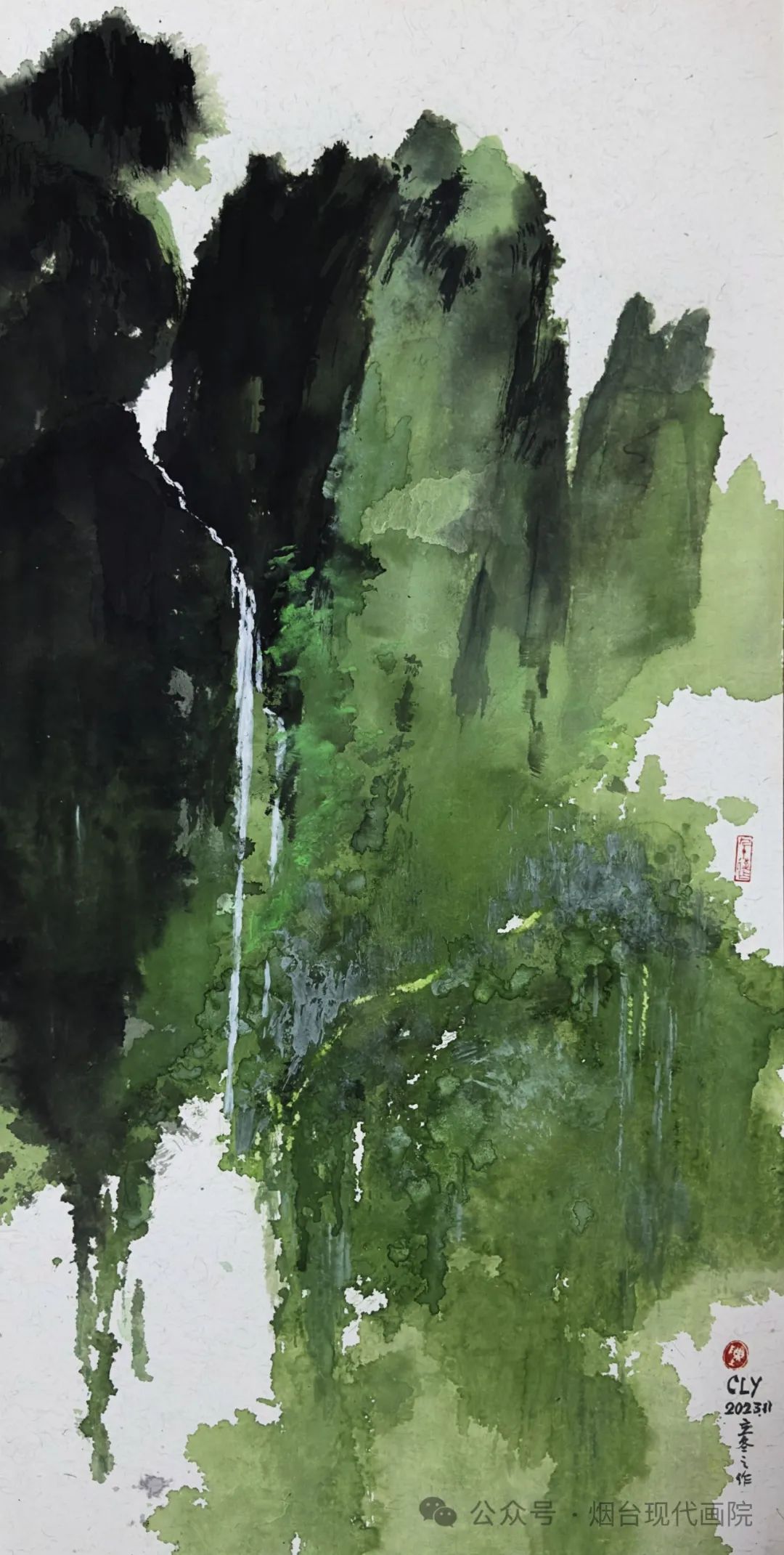陈兰英《春消息》水彩画 50x100cm、