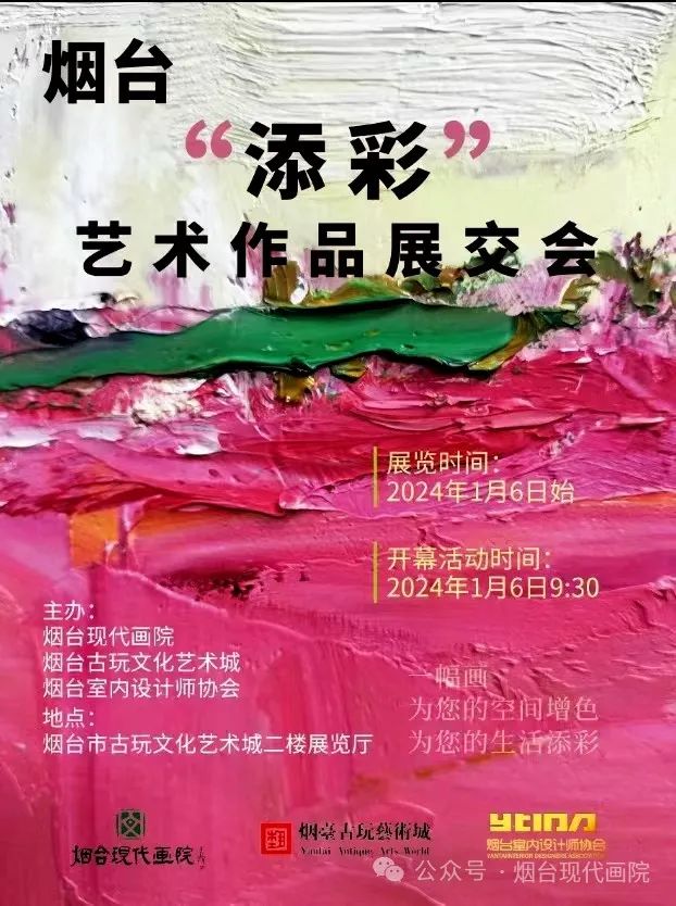 元旦刚过,人们继续沉浸在浓郁的新年喜庆氛围中。由烟台现代画院、烟台古玩艺术城和烟台室内设计师协会联袂举办的“添彩——2024烟台艺术品展销会”即将于1月6日在烟台古玩文化艺术城二楼展览厅开幕,并在6日上午9时30分举行启动仪式。