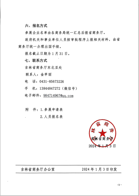 也可直接联系吉林省商务厅东北亚处报名: