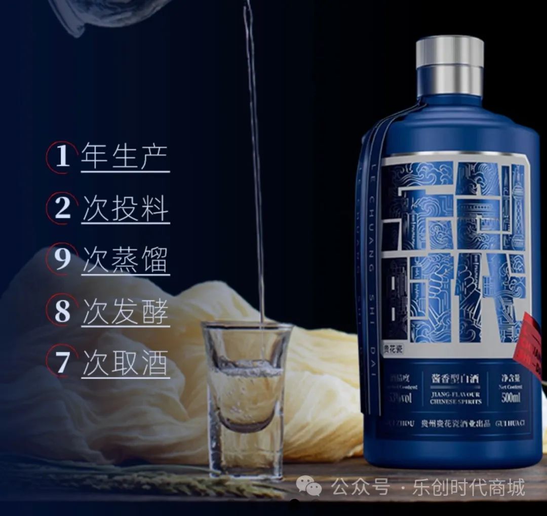 乐创时代酱香型白酒采用当地优质高粱和小麦,经端午制曲,重阳下沙,九蒸八酿,七次出酒。