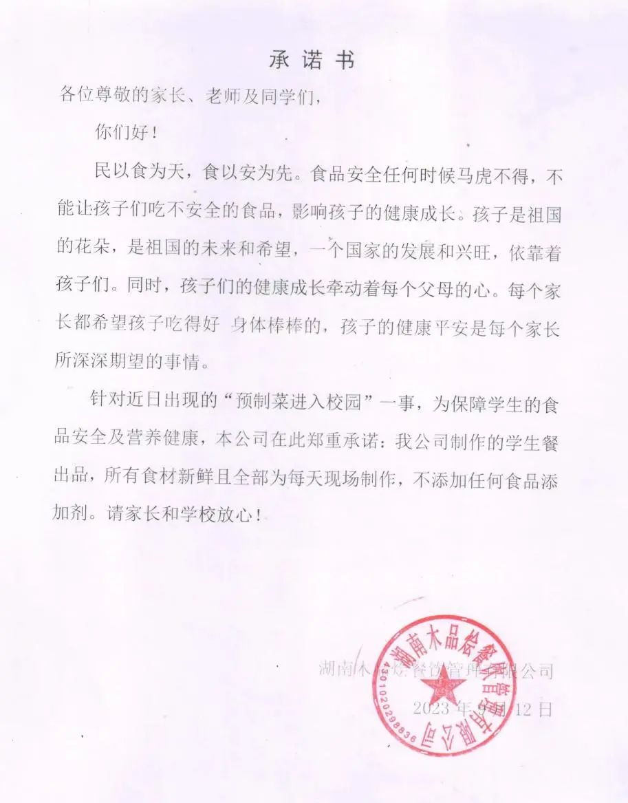 木品烩餐饮公司承诺书