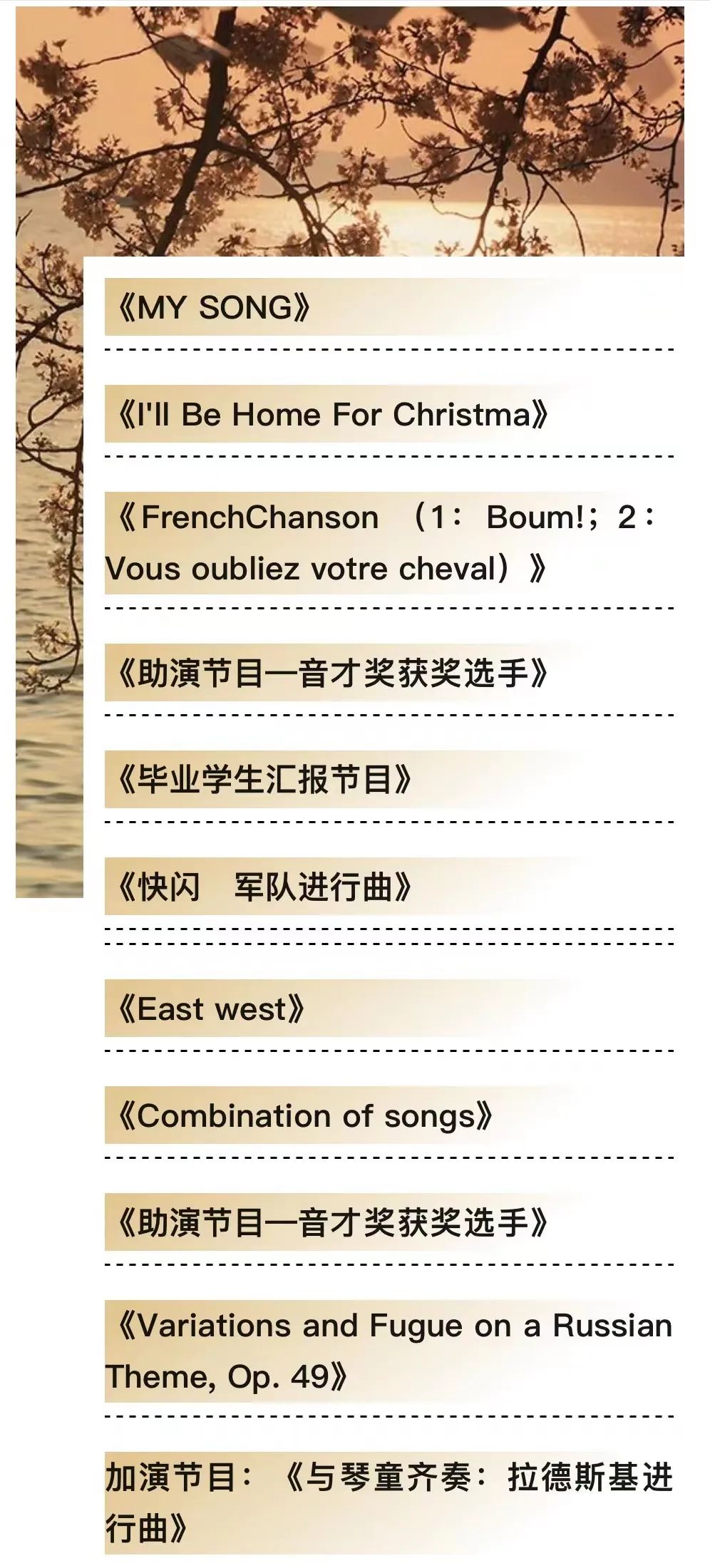 13岁考入中国音乐学院附中,在校期间以优秀生身份代表中国音乐学院附中在北京中山音乐堂 中央民族大学音乐厅 山西太原音乐厅 唐山丰南大剧院等地多次举办音乐会,期间曾获得美国科罗拉多国际钢琴比赛第一名,星河湾全国钢琴大赛北京赛区第一名。