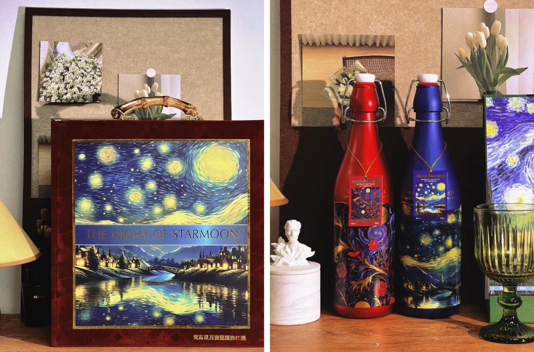 礼盒满满的细节,中间是梵高著名画作“星夜”,高度夸张变形的星空营造出强烈的视觉对比。