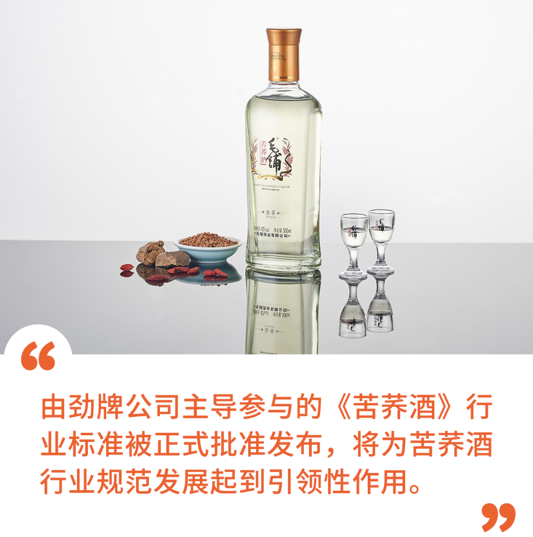 在全国酿酒标准化技术委员会的指导下,劲牌和多家酒企开展了技术调研、标准起草、研讨评审和社会意见征集等,苦荞酒行业标准日渐清晰。历经5年努力,这一标准最终出炉。“苦荞酒由劲牌创新研发推出,因其健康定位和独特口感而广受消费者喜爱,并由此形成了新的草本白酒品类。”湖北省酒类流通行业协会会长顾虎介绍,对新出现的酒类品类进行规范并制定标准,具有极其重要的意义,劲牌牵头制定苦荞酒标准,既是众望所归,也能进一步保证苦荞酒的产品品质,让消费者喝到放心酒,助力酒类市场持续良性发展。