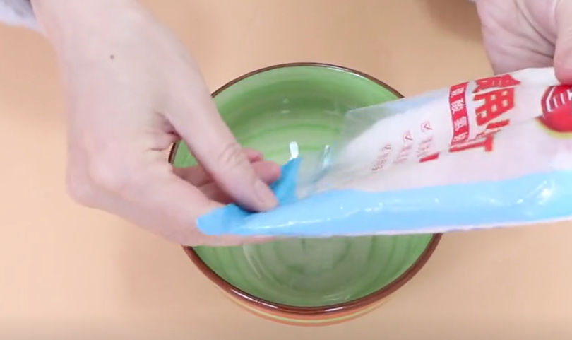 在加入小苏打后,我们将白酒倒入碗中。如果家里有剩下的廉价白酒,我们也可以将其倒入碗中。然后,按照1比1的比例再加入少量清水,并用筷子搅拌均匀。