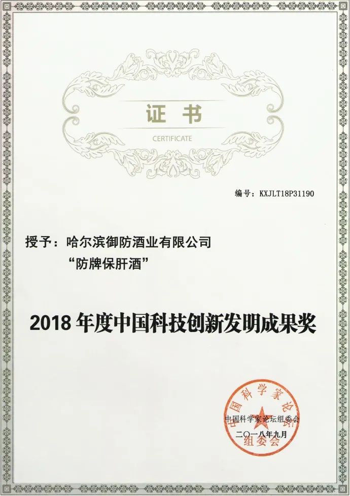 海南保肝酒公司的母公司《哈尔滨御防酒业有限公司》,拥有专业研发团队,多年来一直致力于对以传统白酒为代表的酒精饮料进行升级改造。经过多年的努力,我们终于取得了重大突破,成功研发出了新型的白酒《保肝酒》。保肝酒采用了最新的科技手段,对传统白酒进行了改良和升级。我们在酿造过程中添加了多种药食同源的天然植物提取物,如葛根、甜菜根、大枣等,这些植物提取物具有抗氧化抑制自由基作用,在保持传统白酒的风味同时,可以对肝脏起到加速酒精代谢,降低酒精性肝损伤,保肝护肝的作用,可以有效减少烈性酒精饮料对人体的危害。同时,我们还联合基酒生产企业采用了先进的酿造,蒸馏工艺,对传统白酒进行了精细化处理,去除了其中的杂质和有害物质,提高了白酒的纯度和品质。经过多次实验和检测,我们的保肝酒产品已经通过了国家相关部门的认证和检测,荣获多项国家级科技奖项,并深受广大消费者的青睐。