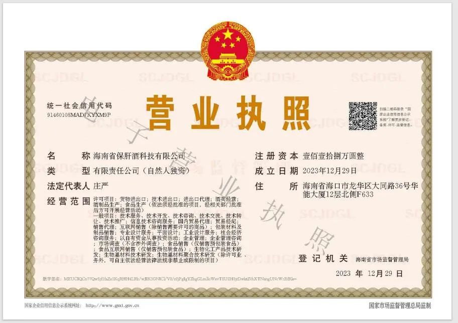 《海南省保肝酒科技有限公司》在琼正式成立!
