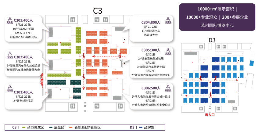 新能源汽车动力总成展区超万平,聚焦细分产业链展商,核心头部企业出展率超5成,核心产品展商200+家。