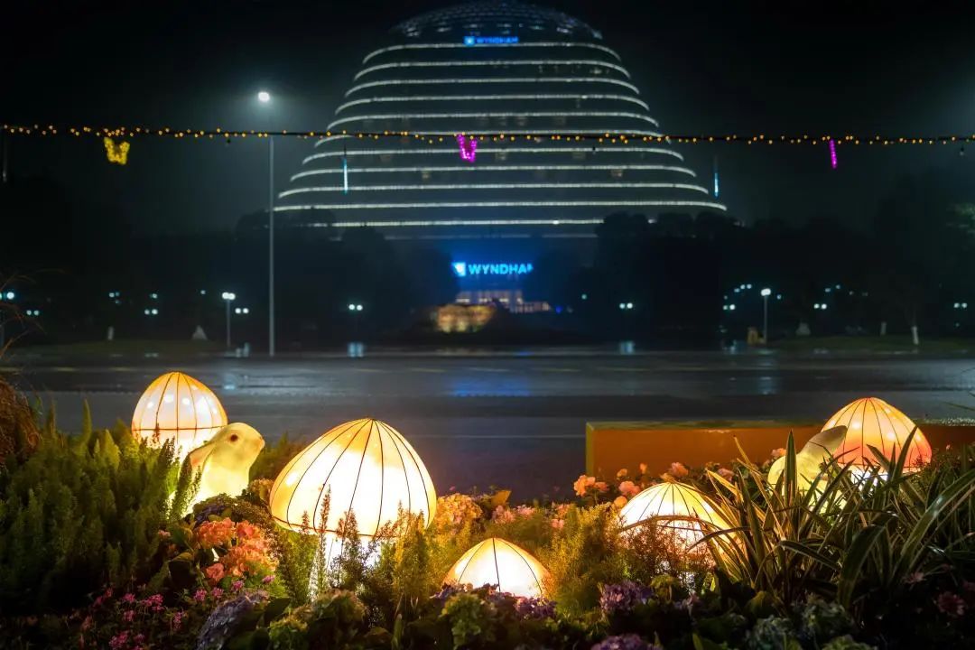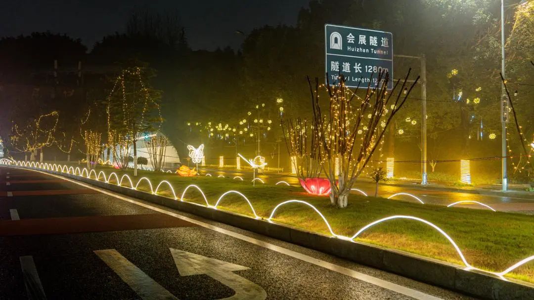 悦来国际会展城迎春灯饰已全部完工亮灯