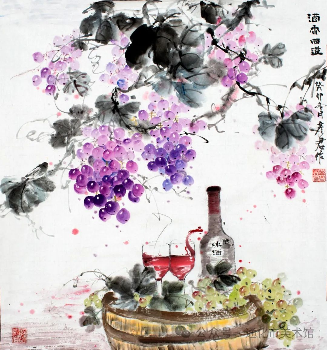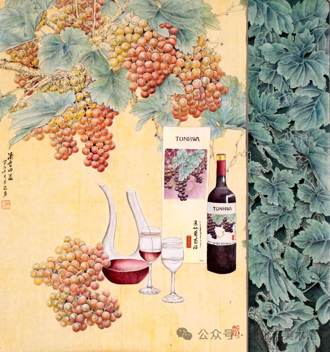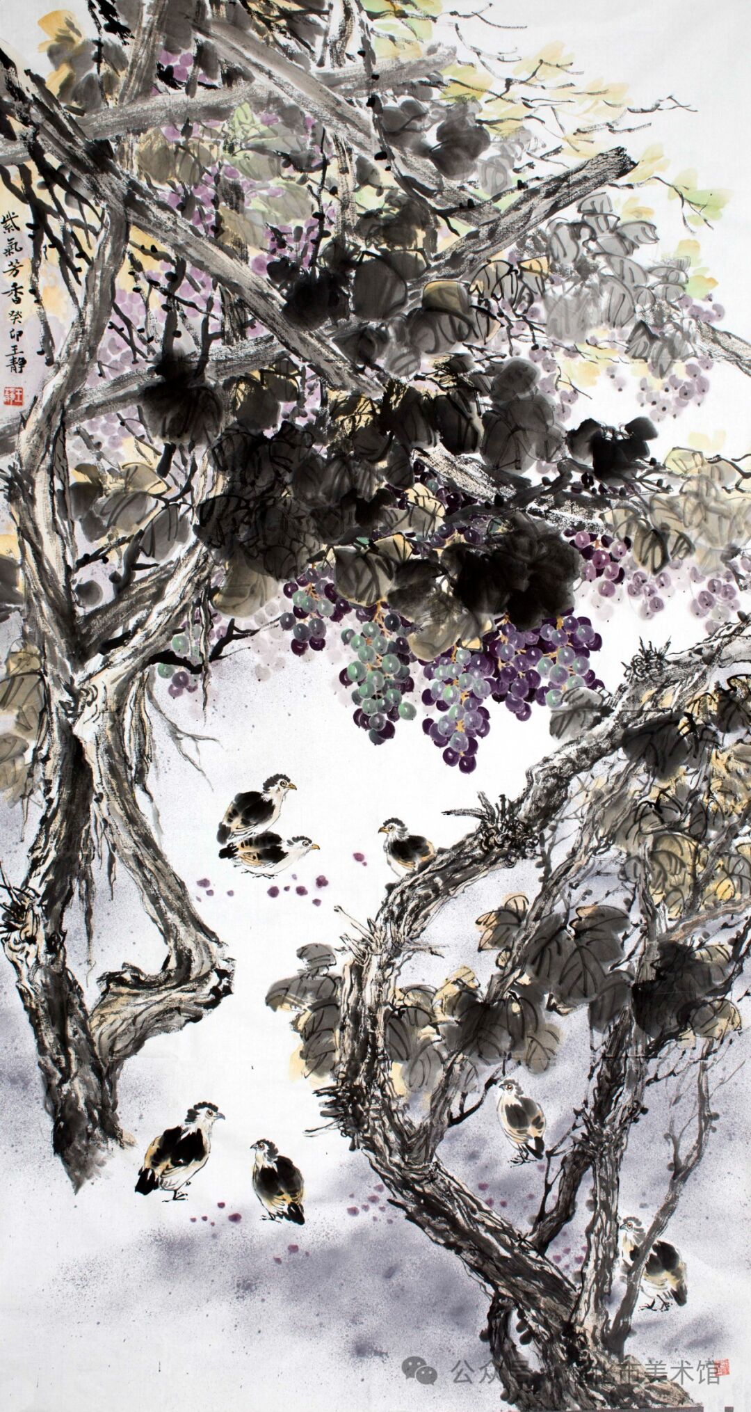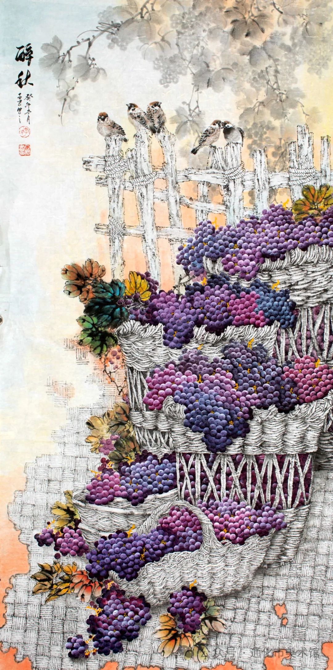 葡萄美酒唤乡情 付秀敏 179×179cm 中国画