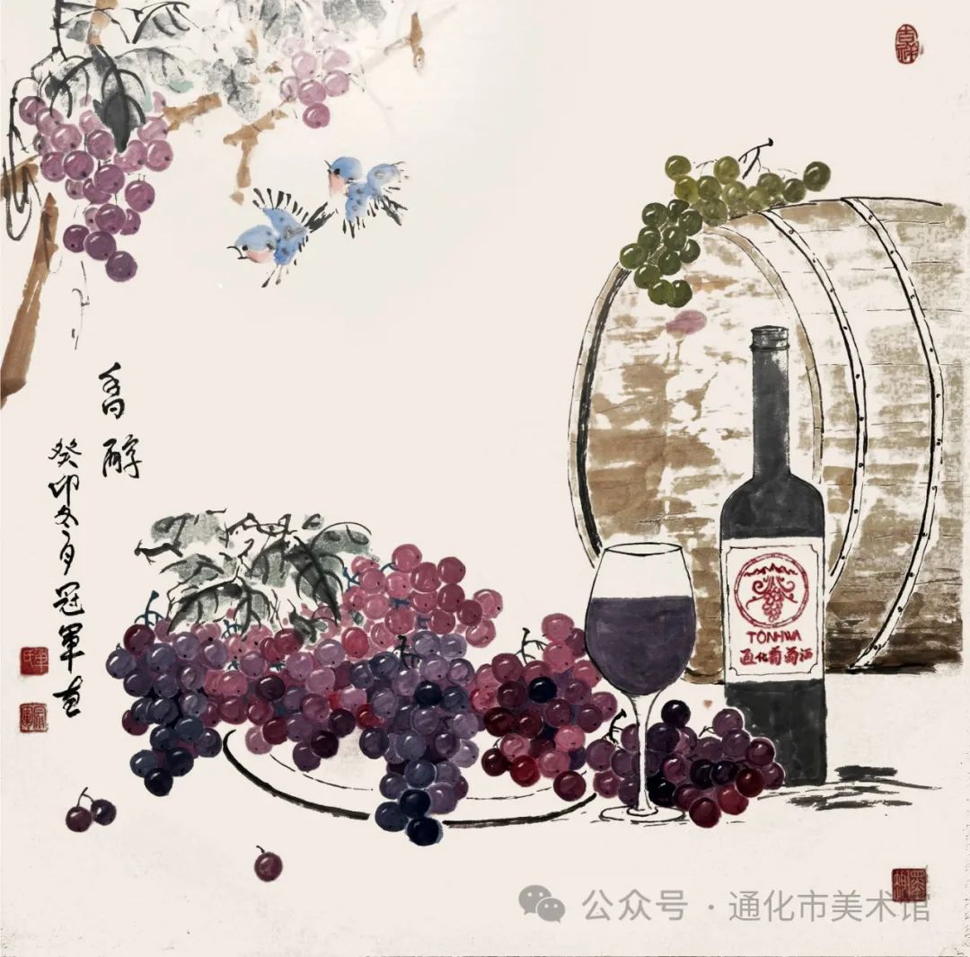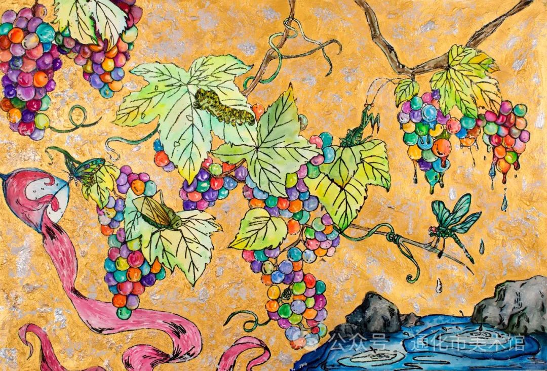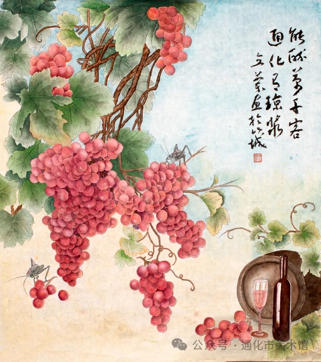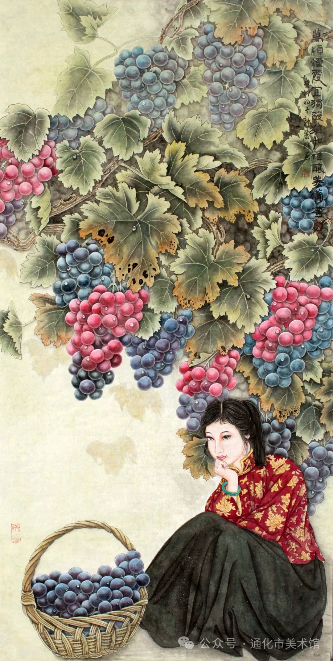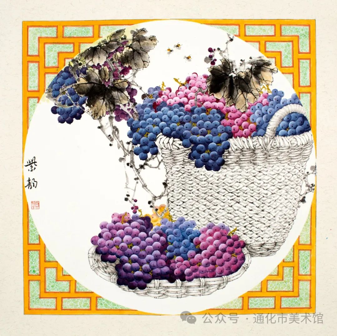 葡萄美酒唤乡情 付秀敏 179×179cm 中国画