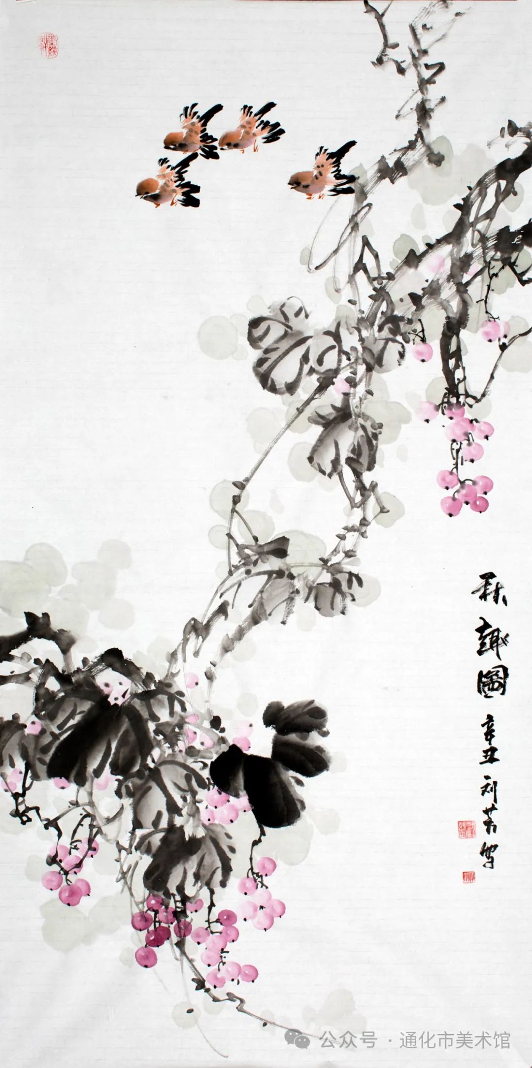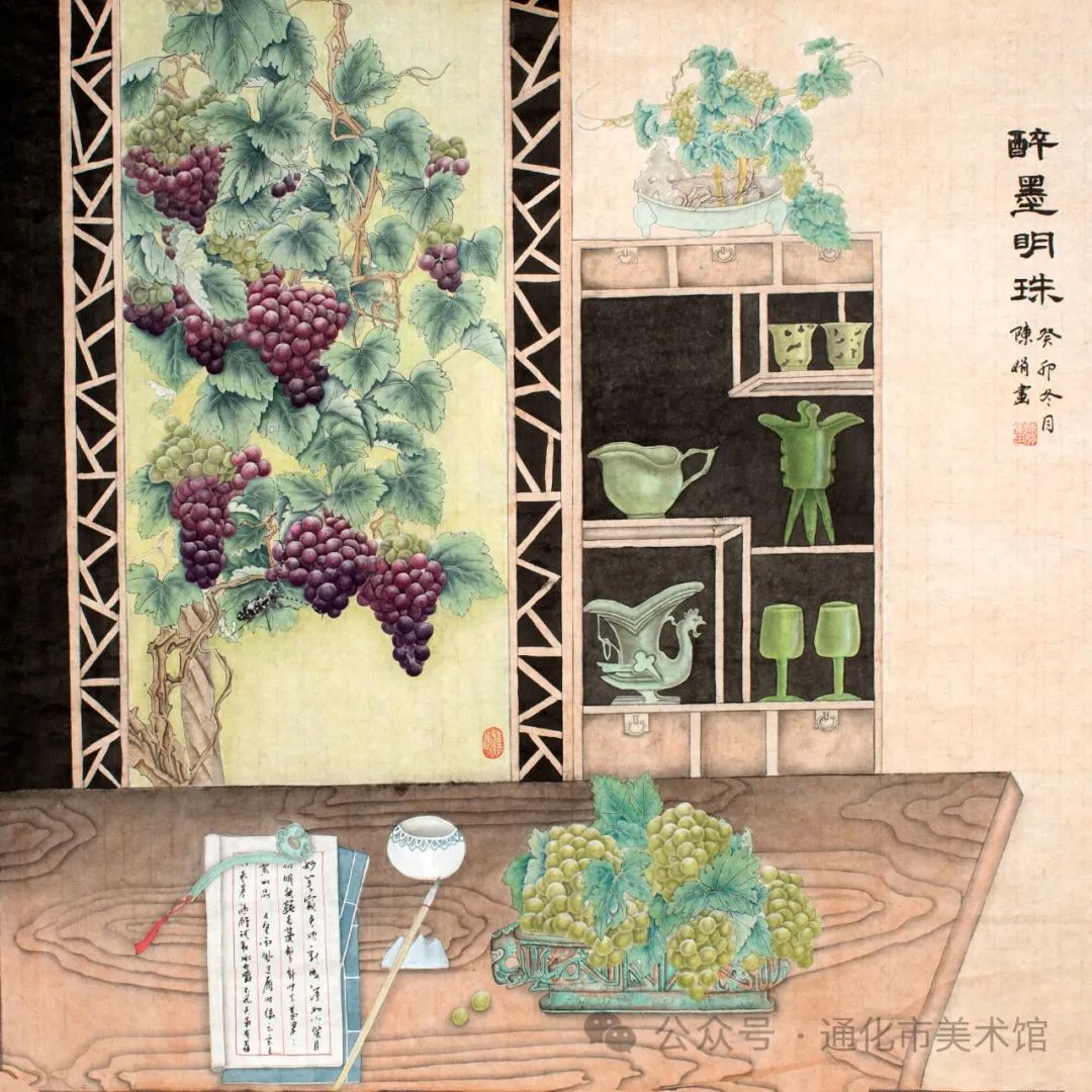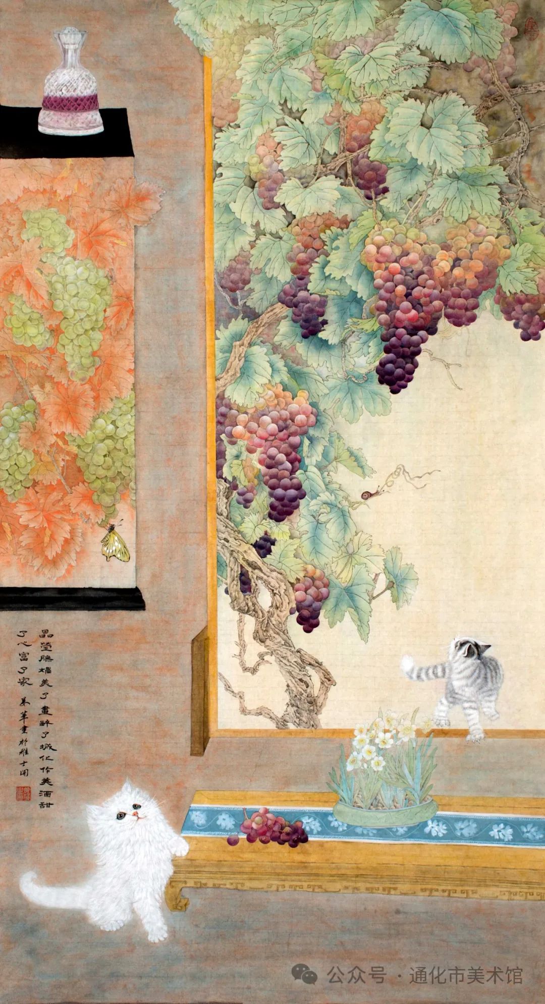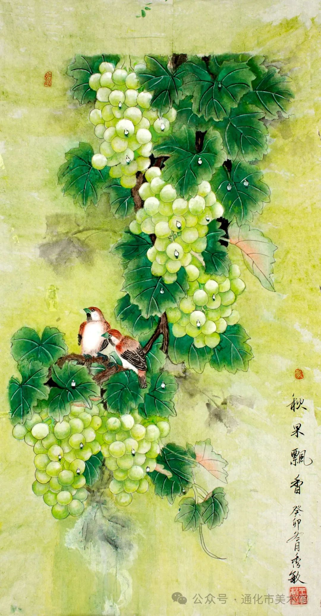 葡萄美酒唤乡情 付秀敏 179×179cm 中国画