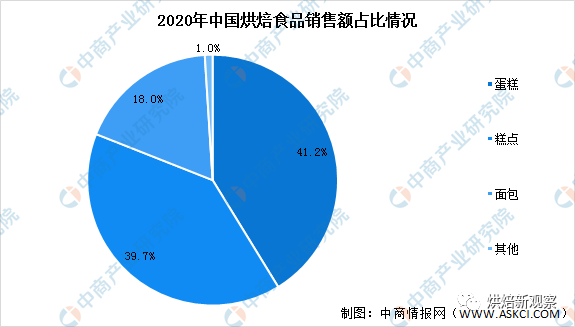 烘焙产品可分为蛋糕、糕点、面包等类别,从我国烘焙产品销售额来看,2020年蛋糕品类销售额最高,占比达到41.2%;糕点占比39.7%;面包占比18%。蛋糕、糕点占据主导地位,但随着面包类产品的代餐趋势逐渐增强,面包所占的市场份额将增加。