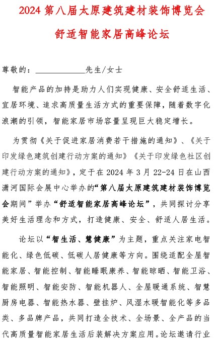 2024第八届中国中博太原建筑建材装饰博览会(简称:太原建博会)将于2024年3月22—24日在山西潇河国际会展中心隆重揭幕。本届博览会以“盛会再启,聚势太原,稳商扶商,繁荣市场 ”为主题,全力为企业搭建品牌建设、招商宣传、渠道拓展的交流平台,力争为建材家居装饰行业市场呈现一场最精彩的商贸盛会。诚邀大建材家居行业的伙伴们一起来共襄盛举!