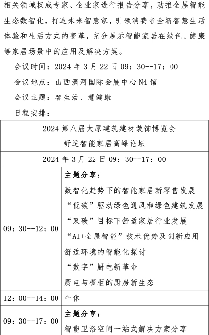 作为每年一度建材家居行业的盛典,为配合市场发展,本届太原建博会除了涵盖传统的泛家居上下游展品外,将重磅推出【智能家居主题特色展区】。