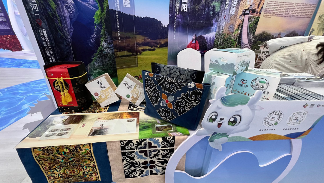 本届旅游展上,重庆精心搭建120㎡特装形象展位,通过群山绵延式弧形外立面、两江交汇地面流水型设计,生动展现了重庆这座“山水之城·美丽之地”的独特魅力。展区现场,土家族摆手舞欢快起舞,梁平木板年画、永川中药纂香非遗传承人精彩互动,各参展单位携地方特产美食、精美文创、非遗好礼、宣传资料等积极开展现场展销和对接洽谈,多维度展示了重庆的自然风光之美和多彩人文之韵。