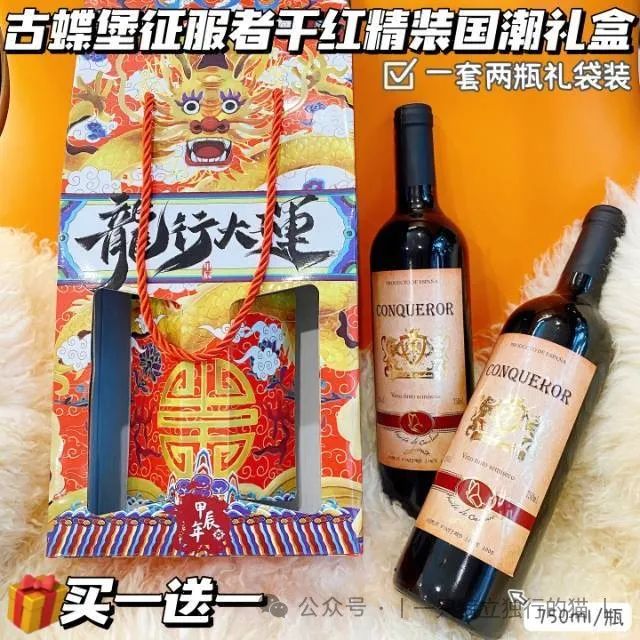 限时99元买一套送一套?到手4瓶‼️ 【古蝶堡征服者红葡萄酒】 春节限定龙年国潮风礼盒? 迪拜免税店配额在售? 官网568?/瓶❌咱团99?到手4瓶❗️ 直减2173元‼️再送两个龙行大运限定礼盒? 喝一口直接囤5箱,会复购10次20次的酒‼️ ?春节将至|以酒寄情|赠予重要的人 ?西班牙进口红酒,顶级产区标杆名家 ?每一支的口感品质都沿用酒王酿造标准