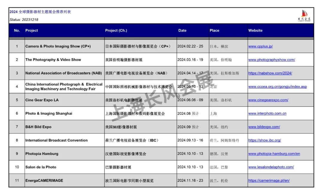2023年年关将至,我司特地于年末发布明年国际摄影器材类相关展会展望,以供展商参考。
