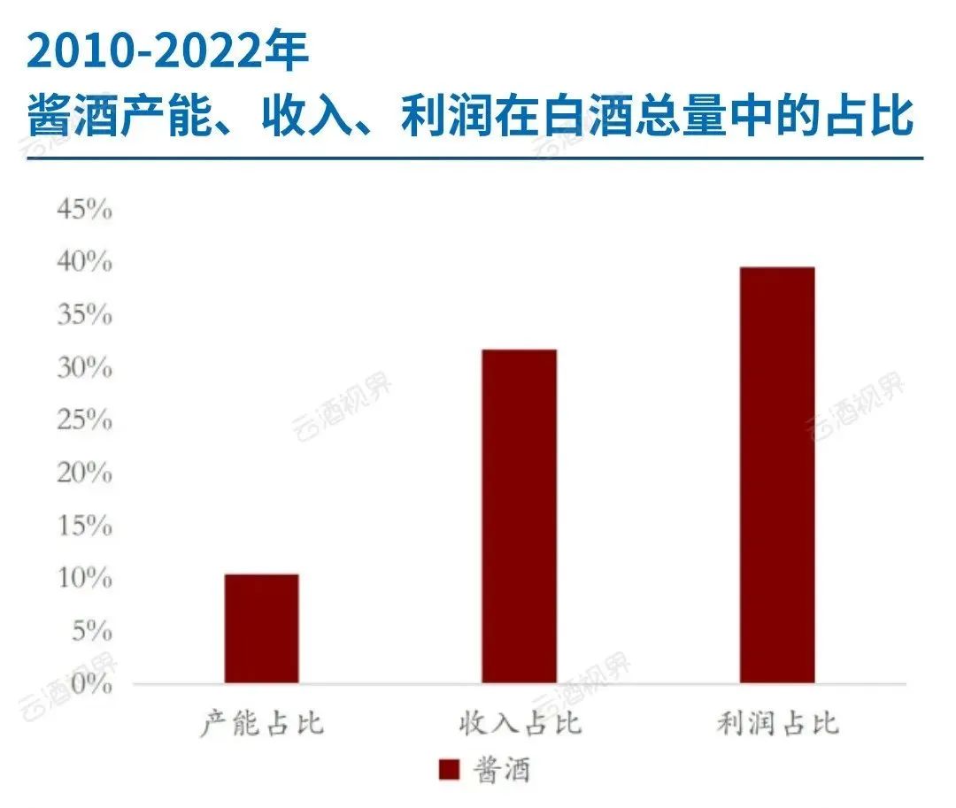 2022年,酱酒产量70万吨,收入2100亿,利润870亿。酱酒以10%的产能占比,贡献了白酒40%利润,盈利能力可见一斑。