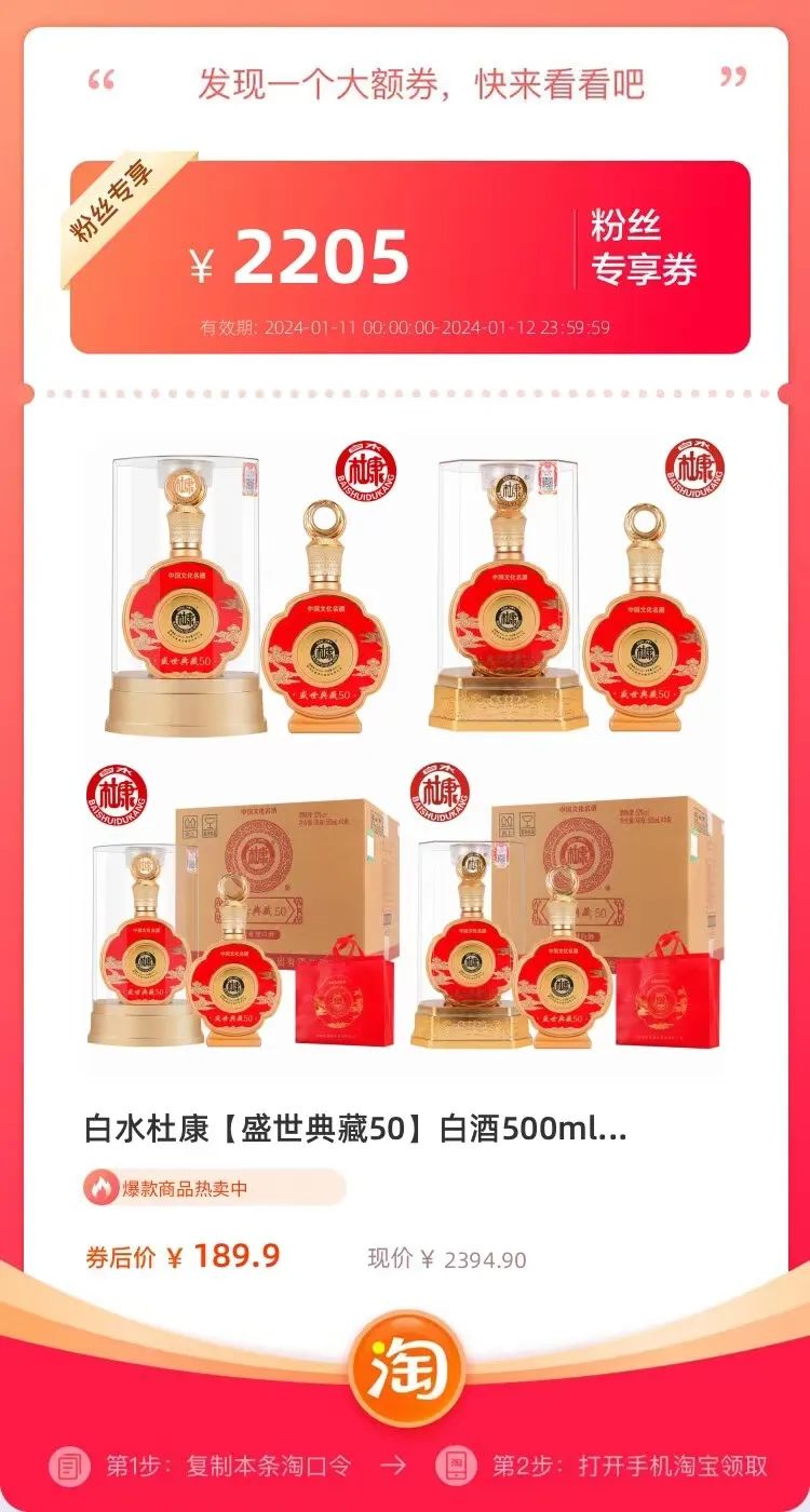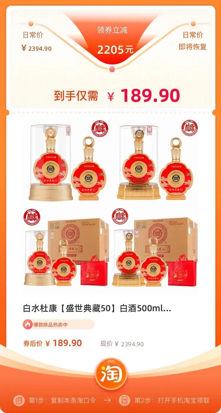 白水杜康【盛世典藏50】白酒500ml*6瓶亚克力礼盒装52度浓香型酒H【包邮】