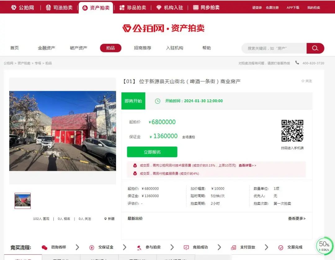 起拍价:6800000元 保证金:1360000元 加价幅度:10000元