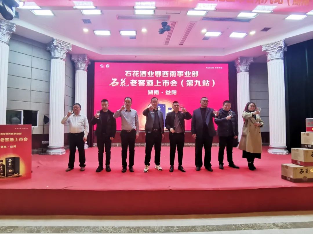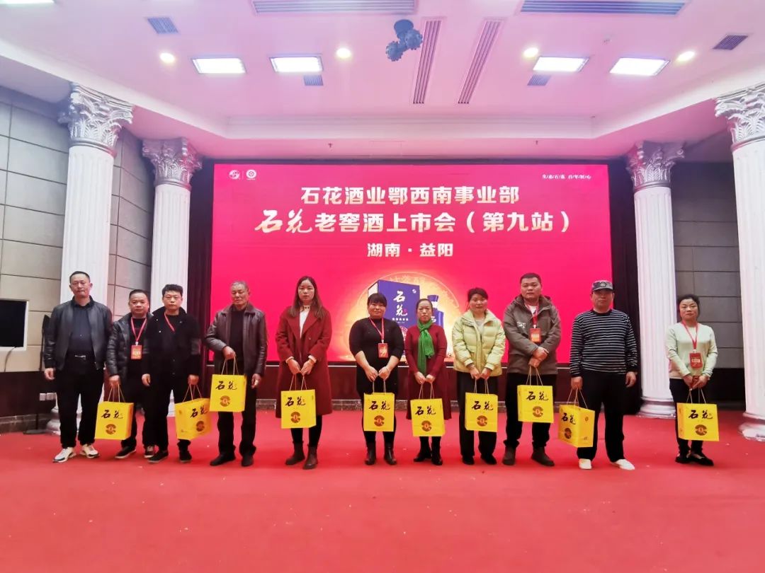 1月6日,石花酒业鄂西南事业部湖南益阳站石花老窖酒上市发布会在益阳世纪豪廷大酒店成功召开,石花酒业营销管理总部鄂西南事业部副总经理魏渊,总监魏红波,副总监王银高、毛习恒,见习总监曾艳、彭啸龙,宜昌大众酒副经理张波,石花酒业合作伙伴唐明高以及益阳区域核心客户欢聚一堂,共同见证石花老窖酒在益阳上市的美好时刻,共享石花老窖酒的馥郁浓香。