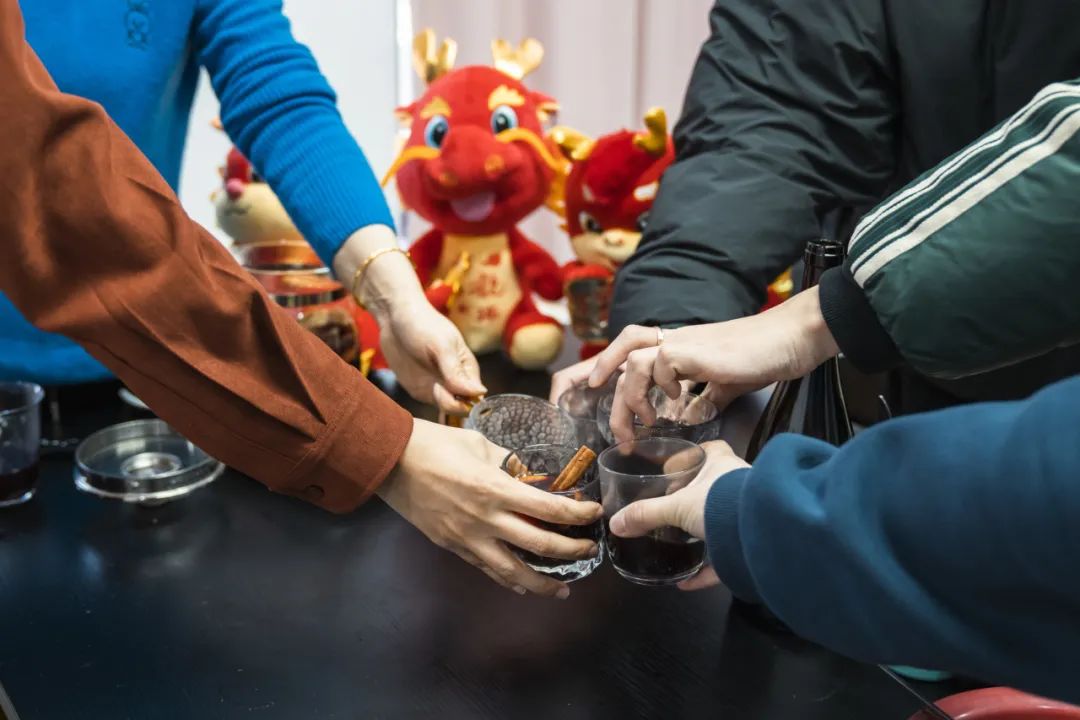 冻笔新诗懒写,寒炉美酒时温。《煮酒论英雄》中,古人就认为酒能激发灵感,消除疲劳,驱散寒气,因此在各种场合都会用酒来庆祝,早在那时便已经出现了特殊的饮酒方式——煮酒。本周六,玉兰花园的陆阿姨,为忙碌了一整年的居委工作人员们特地煮上了一壶精心准备的热红酒。