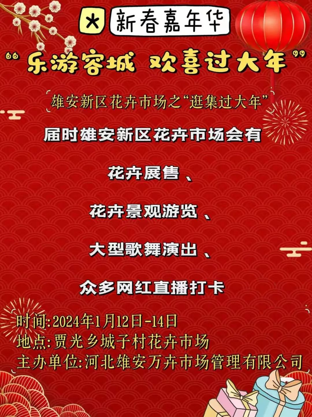 百花争艳迎新春,花团锦簇过大年。1月12日至14日每天上午9:58-12:00,在贾光乡城子村花卉市场举办雄安新区万卉花艺展销会,届时会有花卉展售、花卉景观游览、文艺演出、网红打卡等活动,感兴趣的家人们快来看看吧!!!