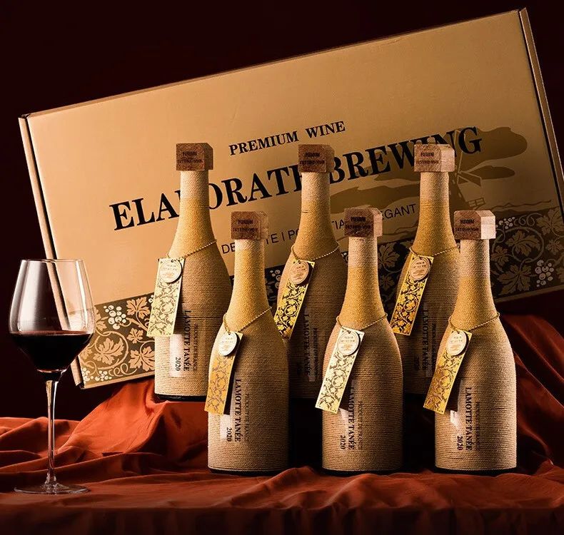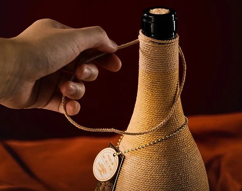 每瓶酒上都有人工缠绕的金丝麻绳,包装很有特色,处处彰显高级感印记!好喝更好看!