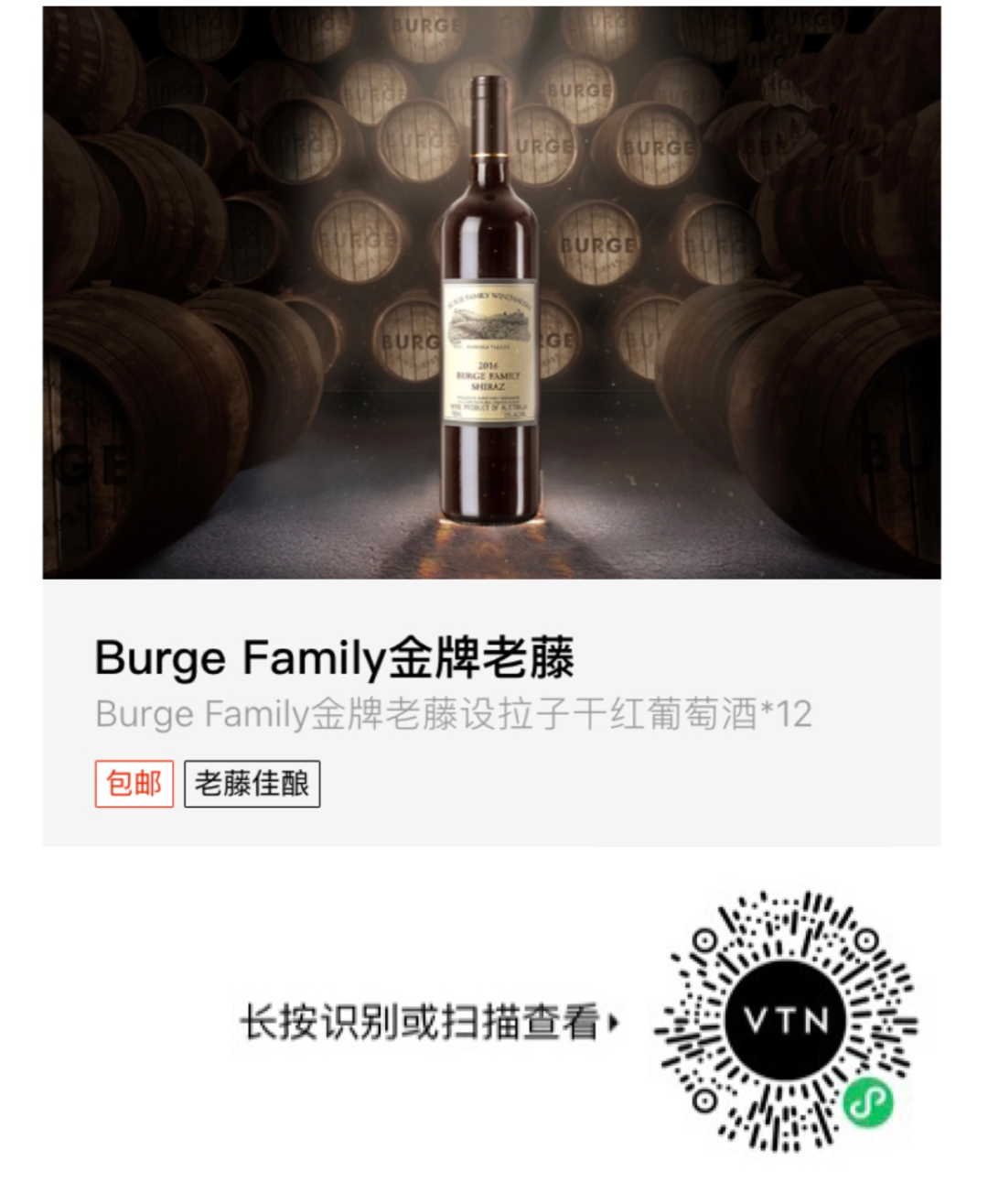Burge Family老藤设拉子干红葡萄酒*12瓶~