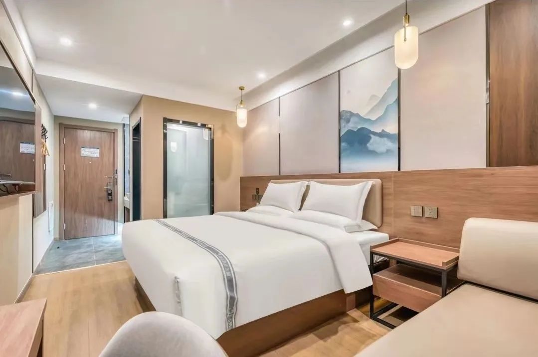 房间内实现干湿分离,并精选纯植物洗护用品,为旅客提空舒适放松的入住体验,同时酒店还配备中式自助早餐,供客人尊享饱满晨间时光。酒店实现了无线WiFi全覆盖,并提供24小时热水、空调、机器人送物、行李寄存、自助洗衣服务等一站式智能化的酒店服务,同时还设有餐厅、免费停车场,集商务会议、餐饮、住宿为一体,让每位入住的宾客享受到都市花园贴心的品牌服务,体验到物超所值的享受。