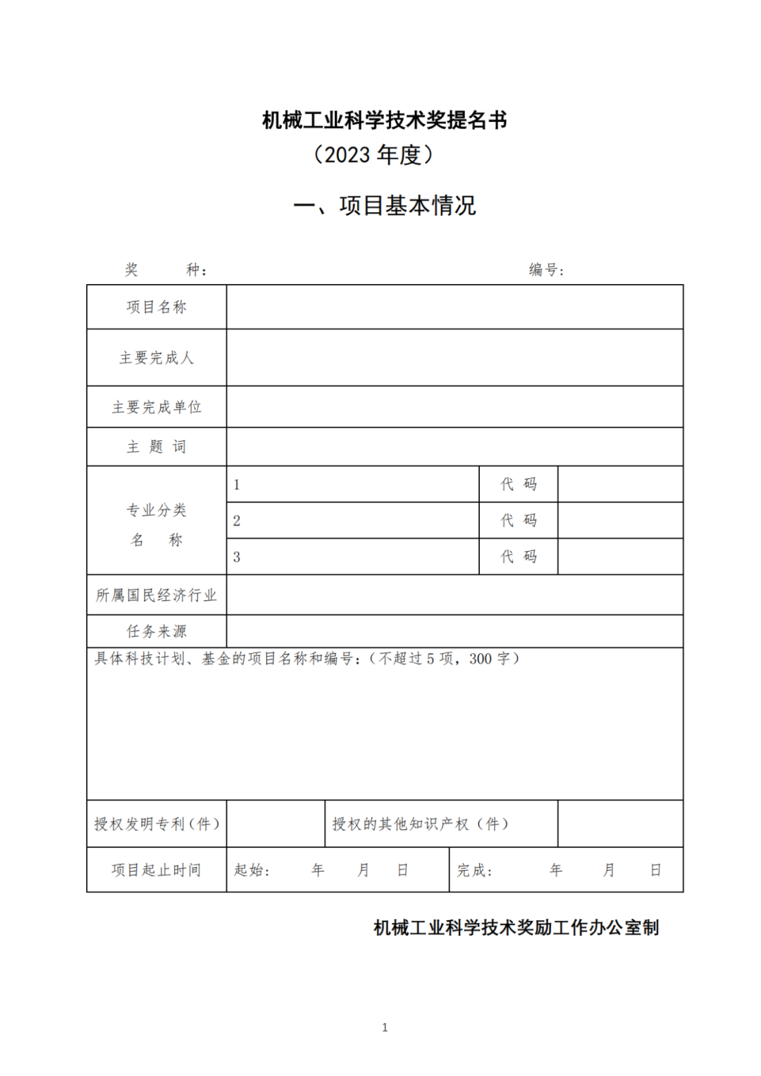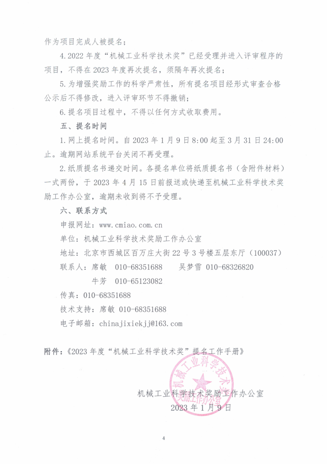 附件《2023年度机械工业科学技术奖提名工作手册》