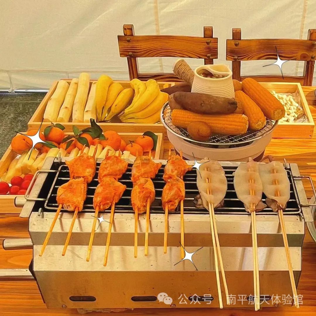 提供炭煮茶(菊花茶、红茶二选一)、烤食四份(玉米、地瓜二选一)、精美小食两份、水果一份、南平航天体验馆参观券五张。