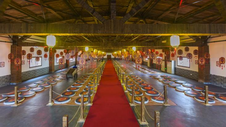 今年,黄鹤楼酒智能酿造园一期二期工程完工,正式对外开放。智能园内,有一栋占地160多亩的车间为26连跨、共计建设了7000多个窖池,是目前华中地区最大的单体智能化酿酒车间。