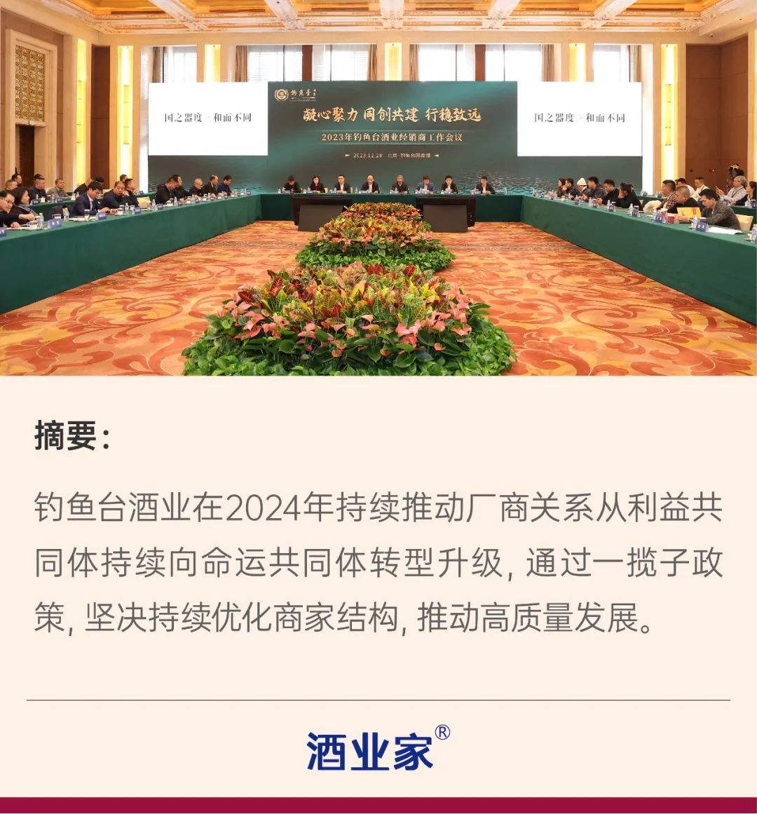 钓鱼台酒业的独特优势之一是“钓鱼台”这个品牌赋予了经销商荣誉感和品牌影响力,这更利于推动厂商的共建工作推进。钓鱼台酒业在2024年将持续推动厂商关系从利益共同体持续向命运共同体转型升级,通过一揽子政策,坚决持续优化商家结构,进一步融洽厂商关系。