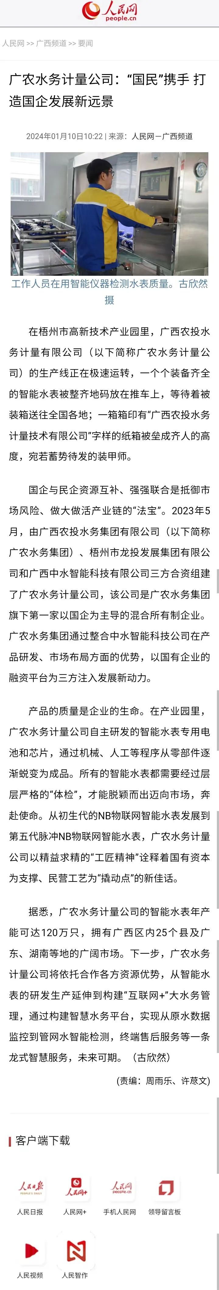 媒体聚焦丨人民网《广农水务计量公司:“国民”携手 打造国企发展新远景》