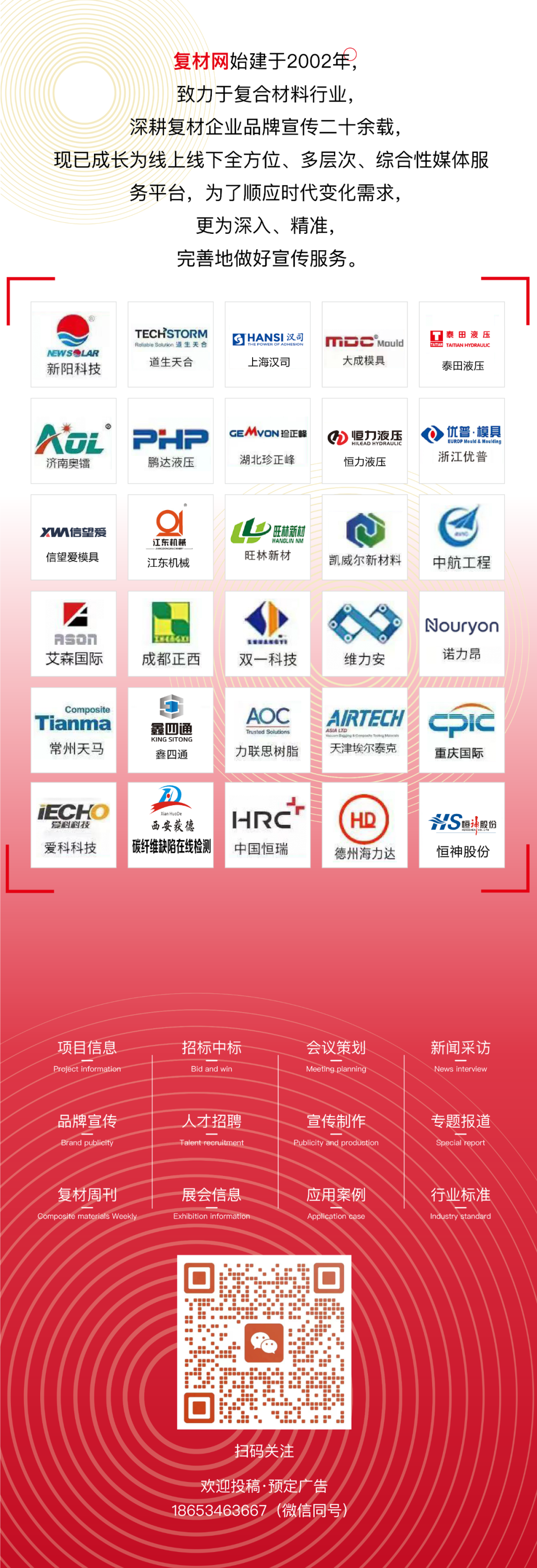 声明:本公众号发布的文章,仅用于复合材料专业知识和市场资讯的交流与分享,不用于任何商业目的。任何个人或组织若对文章版权或其内容的真实性、准确性存有疑义,请第一时间联系我们。我们将及时进行处理。