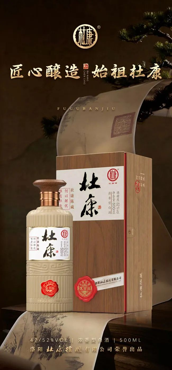 杜康酒,出于杜康酿酒遗址千年帝都洛阳城外。万年玄武岩古泉泉水,流淌着源远流长的中原文化,清冽泉水中两两双抱的鸳鸯虾,见证着杜康泉水的千古传奇。以桑泥为窖,杜康古桑窖池中亿万的微生物菌群历经岁月繁衍,酿出延绵酒香。