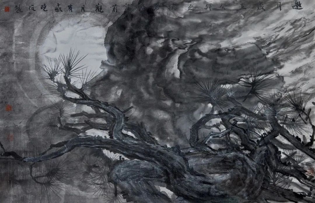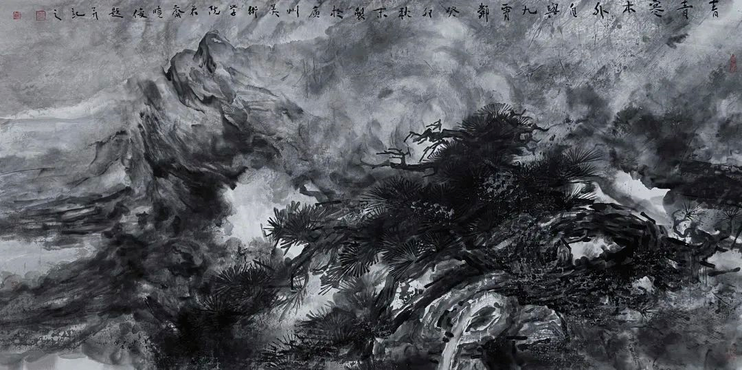 ▲《九霄为邻》 纸本水墨 69×138cm 2023
