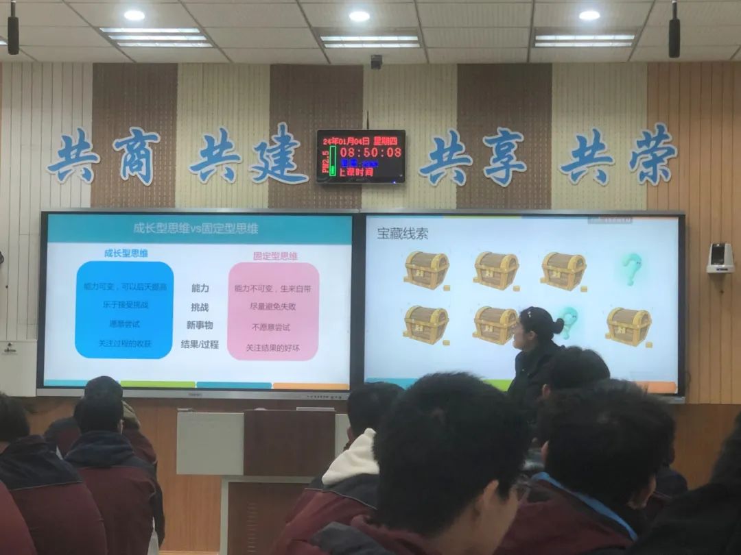 学生考试后,周围会有各种各样的声音,有些是能鼓励学生的,而有些是充满打击的,学生需要意识到尽管外界存在各种各样的声音,但最重要的还是自己内心的想法,自己是否有勇气去面对困难,从而引出本次班会课的主题——成长型思维。