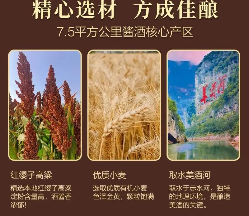 直接以高粱,小麦,水为原料,纯粮固态酿造,入口顺滑,酱香浓郁,好喝不上头;