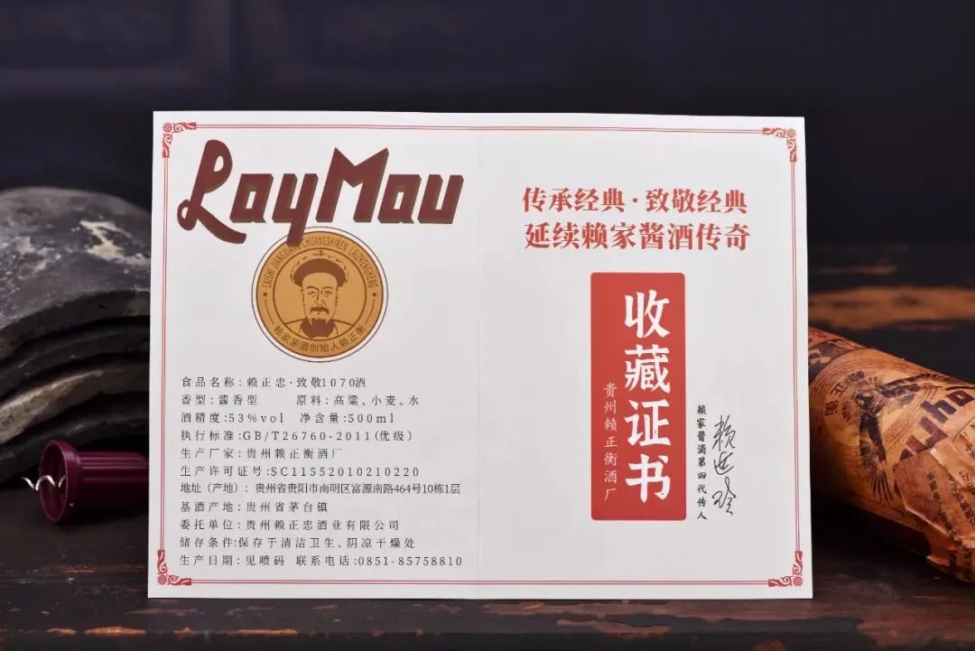 赖茅是”国酒“茅台的前生。这瓶赖正忠致敬1070酒,延续赖家秘方的酱香白酒: