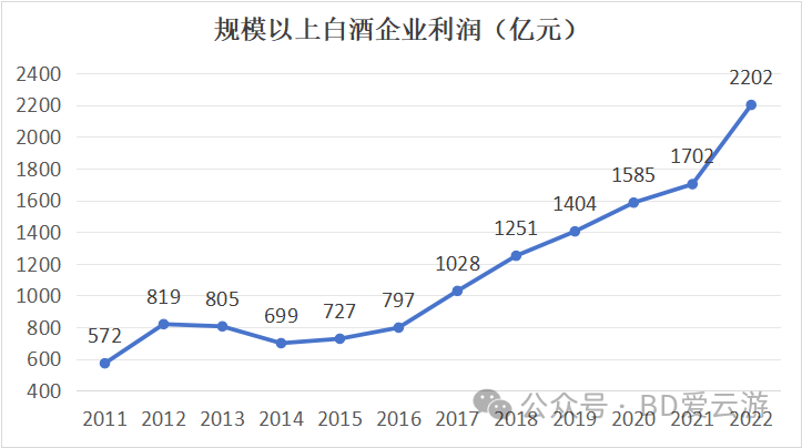 定量计算一下,白酒行业利润总额2012年为819亿,2022年2202亿。10年增长169%,年化10.4%。