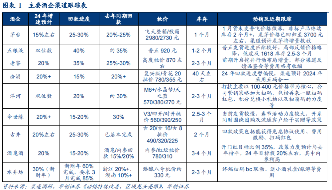 具体内容详见华创证券研究所1月14日发布的报告《白酒行业周报(20240108-20240114):头部回款有序推进,动销成为风向标 》