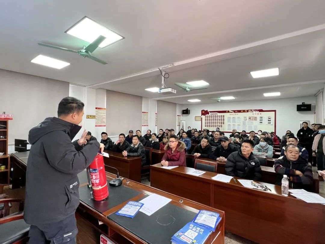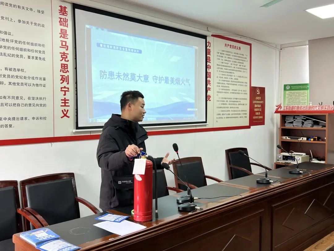 钓鱼矶社区书记王涵超结合近期全国发生的餐饮行业安全生产事故实例,强调了消防安全工作的重要性和必要性,围绕消防安全常识、消防器材使用方法、火灾逃生技巧、火灾应急疏散常识等内容进行了深入浅出地讲解。