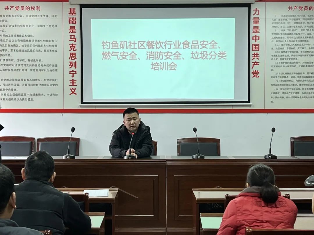 钓鱼矶社区通过“两问大家访”等活动,摸排到辖区内餐饮行业经营户实际需求,社区工作人员在日常工作中也发现了经营户存在有关问题,因此钓鱼矶社区党委于1月11日开展餐饮行业安全培训。
