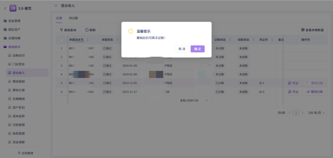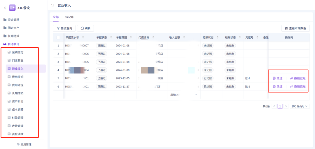 「自动会计」支持业务单据生成凭证,凭证可撤销重新生成;所有业务单据均支持快捷查看本期数据;