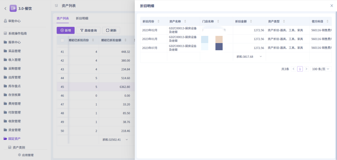 点击折旧明细,可查看历史折旧记录