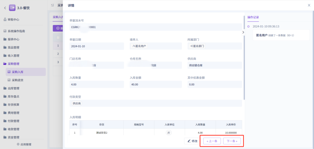 1、所有业务单据查看详情页面,增加“上一条”“下一条”快捷操作按钮;