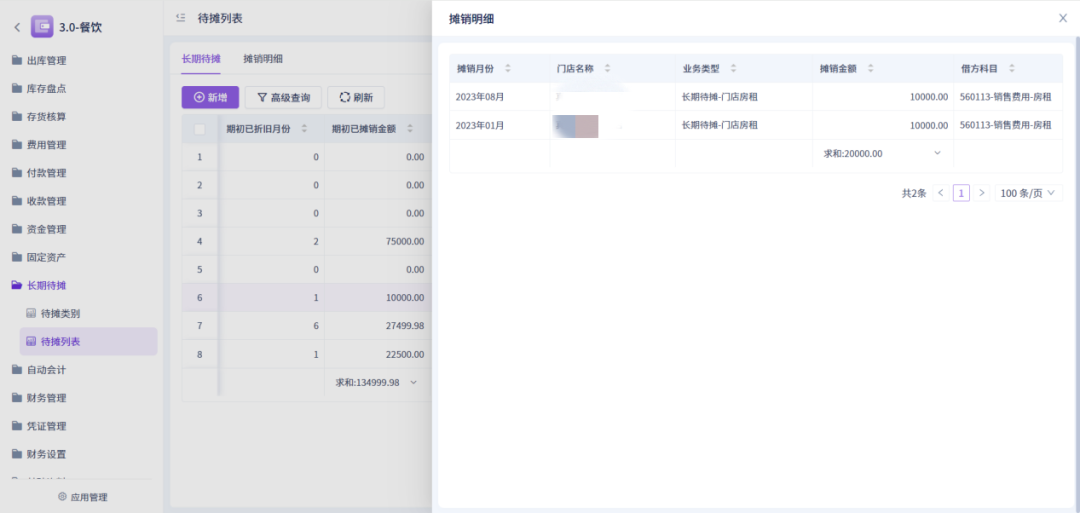点击摊销明细,可查询历史摊销记录